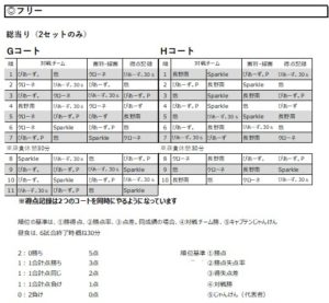 ②フリーの部: コート内、男性2名以内、かつ全員年齢18才以上 計4名