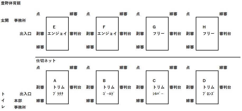 ③トリムの部: コート内、男女各2名、かつ全員年齢40才以上